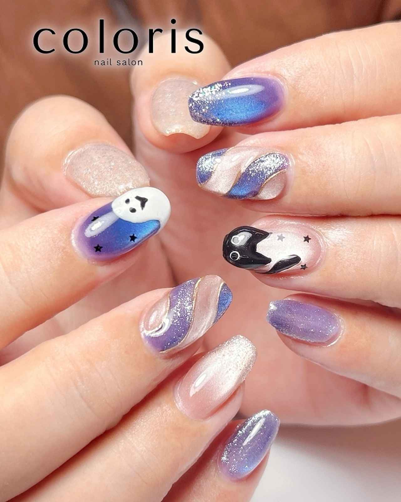 赤坂の「Nail Salon coloris (ネイルサロンクロリ)」のネイリストなべちゃんに施術してもらったネイル色々。今が旬のハロウィンネイル。おばけと黒猫ちゃんが可愛すぎた!マグネットネイルに、1本リングネイル�上品な雰囲気のアシメ...